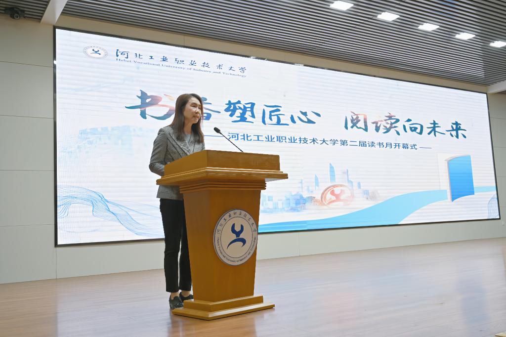 4月23日下午,华体会官方端网站登录入口“书香塑匠心 阅读向未来 ”第二届读书月活动启动仪式在图文信息中心一楼报告厅举行,学校各院系党组织书记及师生代表参加仪式。