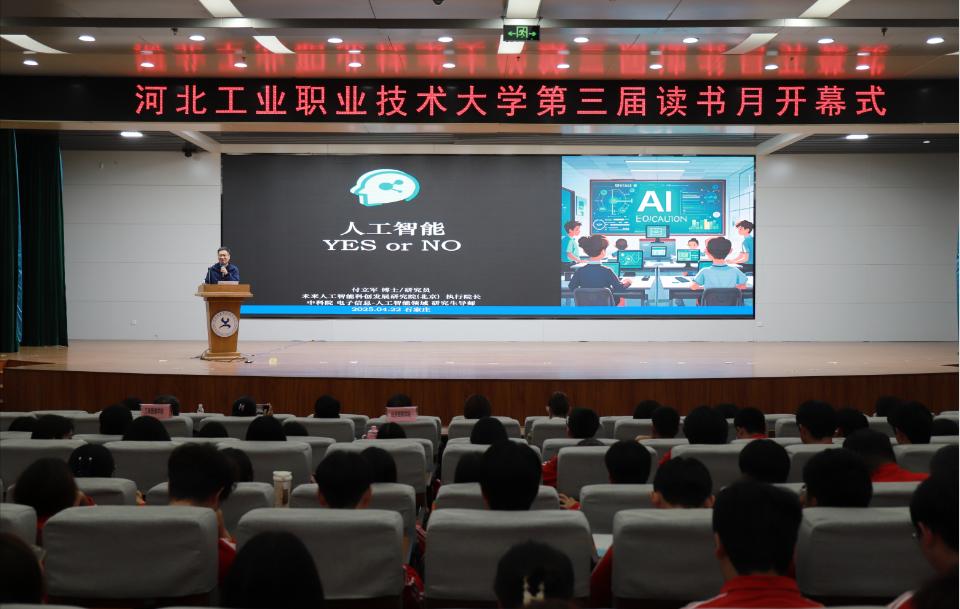 4月22日,华体会官方端网站登录入口“拥抱AI·‘阅’享未来”第三届读书月活动启动仪式在图文信息中心一楼报告厅举行,学校各学院党组织负责人及师生代表参加活动。