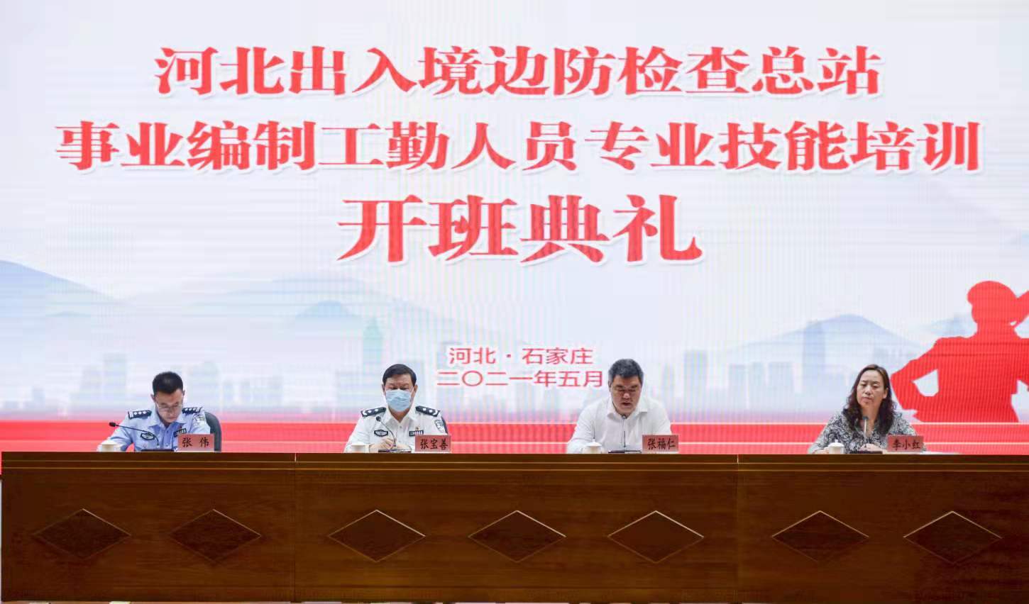 5月14日,河北出入境边检总站事业编工勤人员专业技能培训班开班仪式在华体会官方端网站登录入口图文信息中心报告厅举行。我校副校长张福仁、河北出入境边检总站办公室主任张宝善、边检总站办公室副主任张伟、我校成人教育部、智能制造学院和汽车系的负责人出席仪式。