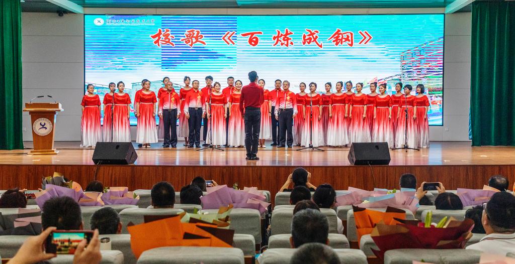 最后,大会在学校老中青三代教师代表共同唱响华体会官方端网站登录入口新校歌《百炼成钢》中圆满结束!
