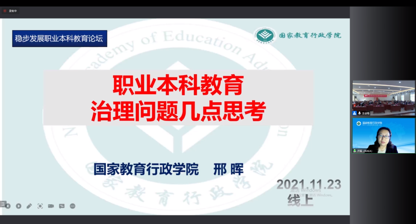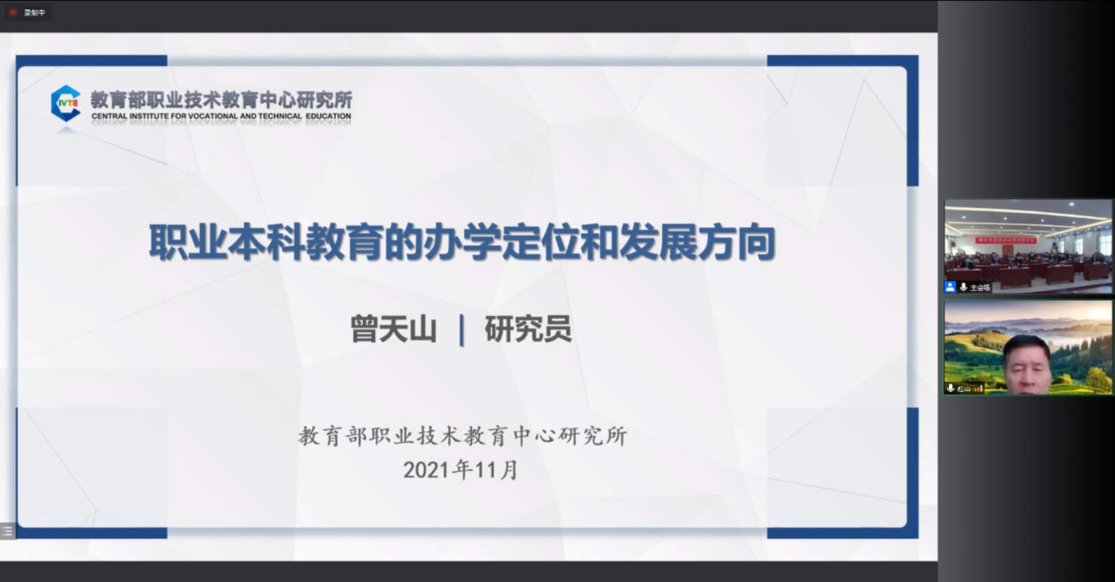 教育部职业技术教育中心研究所副所长曾天山从理论和实践两方面,就稳步发展职业本科教育的有效路径做了分析;中国职业技术教育学会副会长孙善学就职业本科发展目的及其本质特征做了阐述;国家教育行政学院职业教育研究中心主任邢晖谈到了职业本科教育的治理重点问题;全国职业高等院校校长联席会议主席董刚以科学研究为切入点,剖析了高职教育实现高质量发展的内在逻辑;国家督学、陕西省职业技术教育学会会长崔岩就优化类型定位,创建职业本科教育办学特色作了报告;华体会官方端网站登录入口校长薛晓萍结合华体会官方端网站登录入口的办学实践,阐述了高标准建设职业本科教育的发展路径。