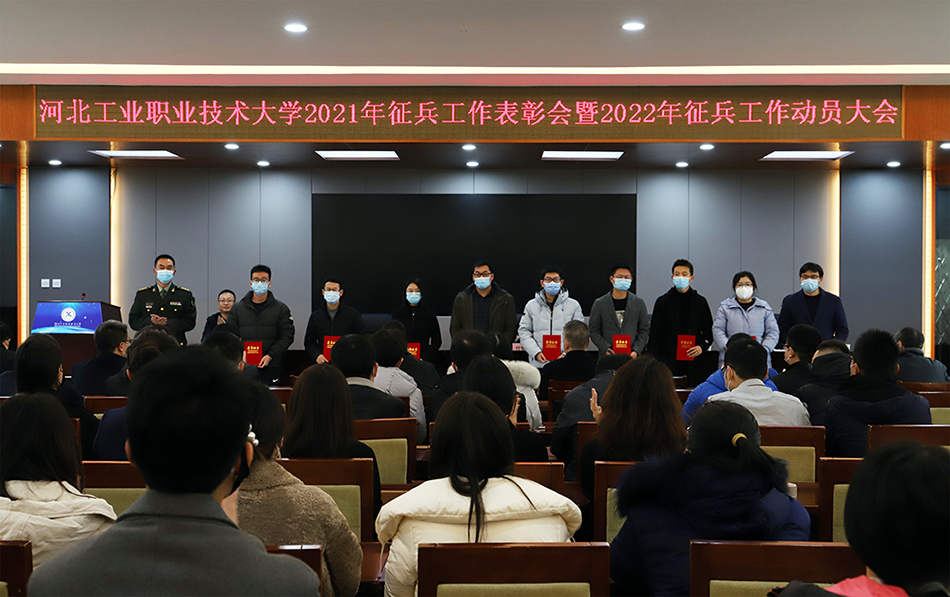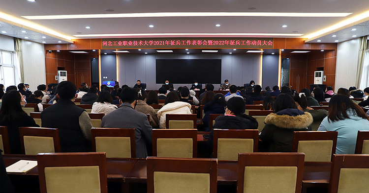 为全面总结2021年征兵情况,部署2022年征兵工作,12月8日上午,我校在办公楼五楼报告厅召开2021年征兵工作表彰暨2022年征兵工作动员会。校党委副书记付俊薇,桥西区区委常委 人武部政委杜国庭、部长杨宇彤出席会议。