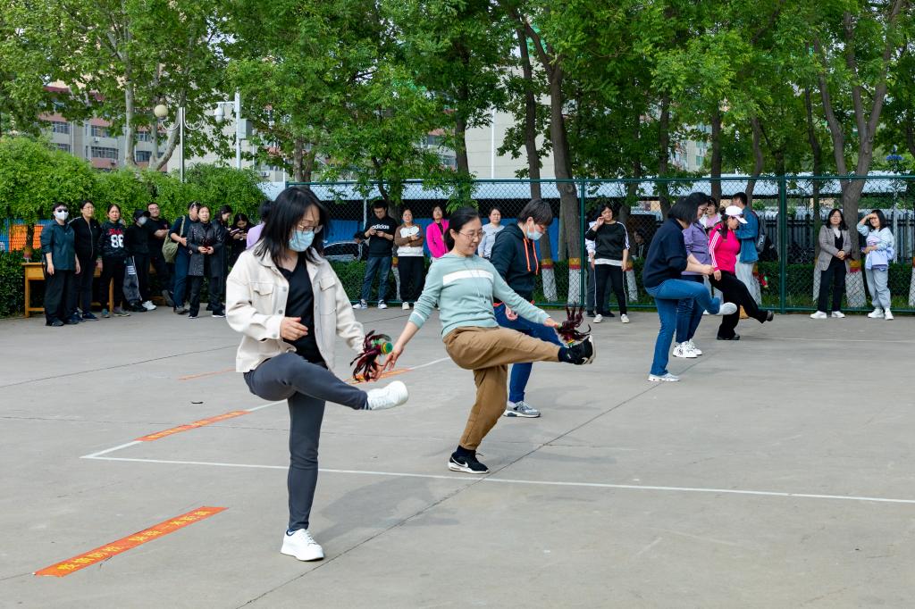 在红旗校区,集体跳绳、仰卧起坐、踢毽子、羽毛球、乒乓球等项目比赛现场,教职工们斗志昂扬,气氛紧张热烈。大家合作默契、奋勇拼搏,尽情挥洒汗水,加油声、呐喊声、鼓掌声此起彼伏。