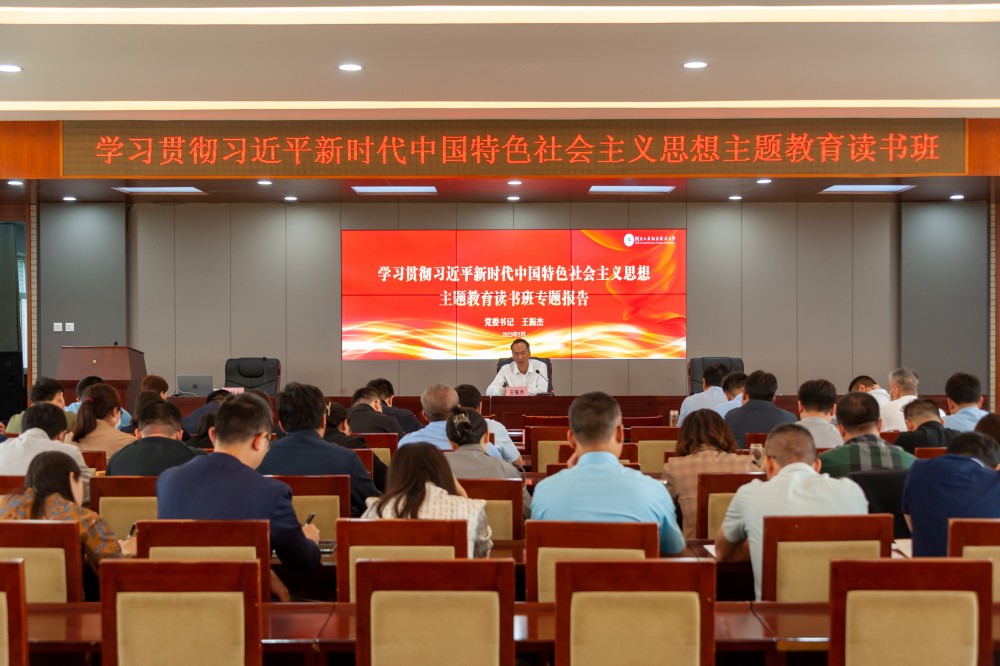 5月11日上午,我校“学习贯彻习近平新时代中国特色社会主义思想主题教育读书班”正式开班,党委副书记付俊薇主持开班式,党委书记王振杰出席开班式并作专题报告。