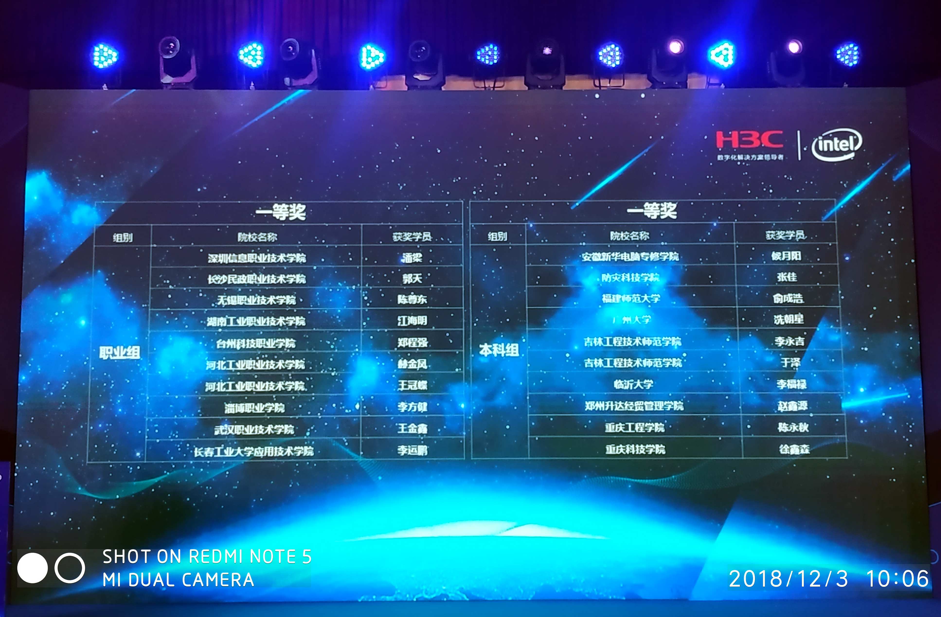 我院学子荣获“新华三杯”2018年全国大学生数字技术大赛一等奖