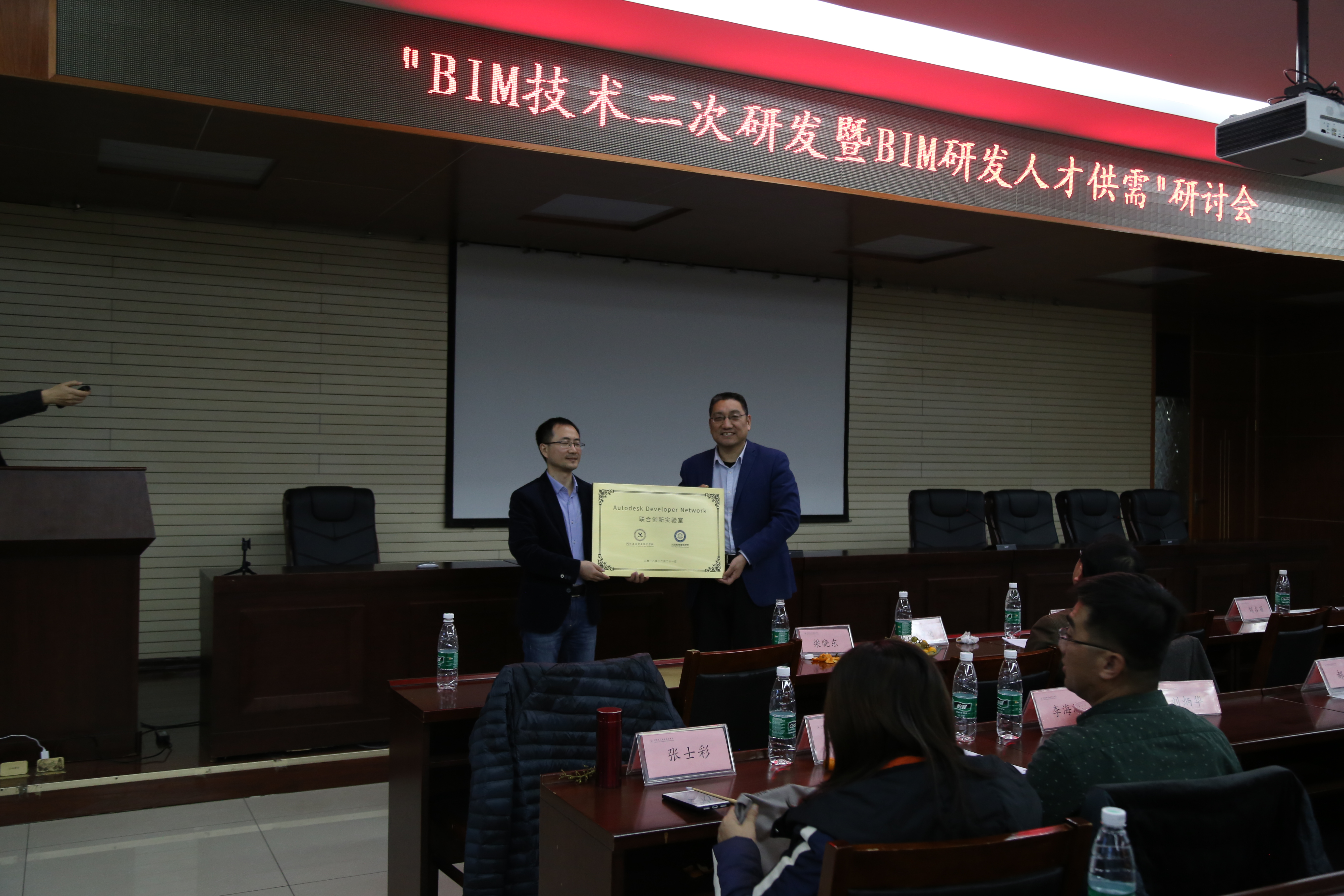 会上,付俊薇副院长致开幕词,向参会嘉宾表示诚挚的欢迎,希望借由此次“BIM二次研发暨BIM研发人才供需”研讨会,大家能够建言献策,共同努力,促进BIM二次研发顺利发展,把培养BIM人才推向新的发展阶段。北京绿色建筑产业联盟陆泽荣理事长,围绕BIM技术发展趋势与BIM技术人才现状谈了意见和看法。会议期间,刘占省副教授、梁晓东高级顾问、叶雄进总经理、建工系负责人、加强总监分别作了题为“BIM软件技术开发及在工程项目管理中的创新应用”、“赋能建筑行业的创新研发-Autodesk Forge 云服务平台及全球典型案例分享”、“BIM二次开发人才培养模式和培训现状”、“建筑信息化技术在土建类教学改革中的应用与实践”和“颗粒度:建筑信息化跨专业创新融合”的主旨交流。随后,在全体与会成员的见证下,举行了“Autodesk Developer Network 联合创新实验室”挂牌揭牌仪式。