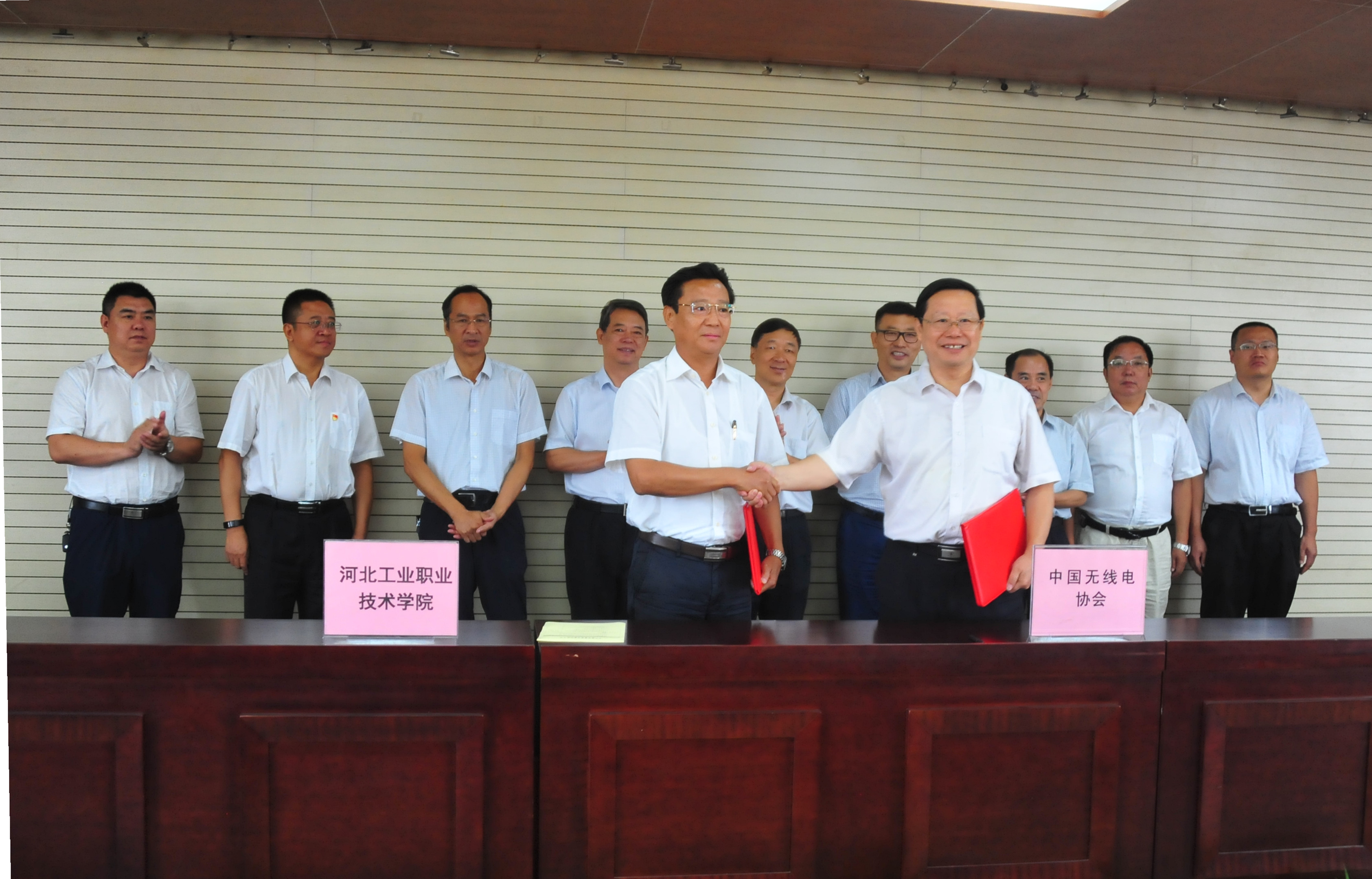 仪式上,学院贾俊礼院长、中国无线电协会阚润田秘书长分别代表河北工业职业技术学院和中国无线电协会签署合作协议。全体与会领导与嘉宾一起共同见证了这一美好时刻。