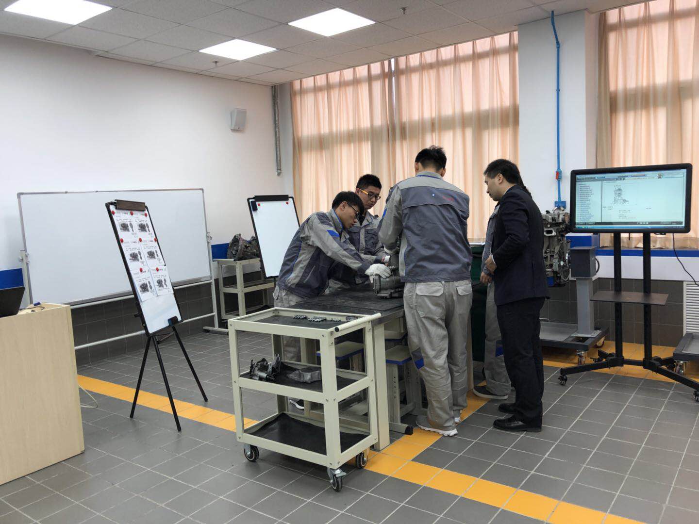 在校企合作教学研讨会上,我院汽车工程系负责人对2017年度通用订单班教师能力提升、订单班学生培养实施方案、课程安排以及2018年教学实施计划、项目运行经验等方面进行了总结和汇报。上汽通用订单班教师进行了4门课程、90分钟的观摩课并向合作企业介绍了订单班教学资料、实训设备使用和保养等具体情况。上汽通用汽车校企合作项目培训师范鹏举针对学院下学期的课程设置、授课内容、实训安排等方面提出了很好的建议,对此次观摩课进行了反馈和总结,对教师们的理论知识水平和授课水平给予了很高的评价。上汽通用汽车校企合作项目主管殷雪飞就下一阶段订单班学生管理、教学实施、教师培训项目和培训重点与我院进行了深入的交流和研讨,最终达成一致意见。