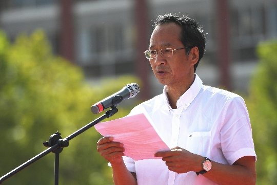 在开学典礼仪式上,教师代表和新生代表分别发言,一句句嘱托充满了老师的关怀和期盼,一声声应承传达了学子的感恩与承诺。学院党委书记王振杰发表了热情洋溢的讲话,他代表学院以及全体师生员工,向全体新生表示衷心地祝贺和热烈的欢迎!向承担本次军训任务的钢铁连全体成员表示由衷的敬意和感谢!王书记对全体新生提出了以下希望,一要明确方向,做好规划。要开拓视野、大胆尝试,敢于把自己的人生目标定位到成才的坐标之上,并为之不懈努力。二要锐意进取,学会学习,要用自身的技能来谋得职业、赢得社会的肯定,创造自身的发展。三要铸造人格,知行合一,希望大家在未来日子里,全面提升自己的综合素质。王书记鼓励全体新生坚持理想和梦想,认真勤勉学习,脚踏实地工作,争取早日实现民族复兴的中国梦。