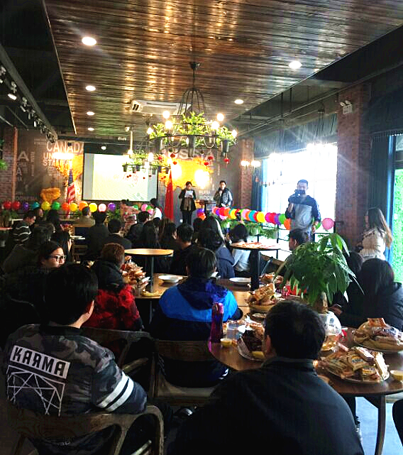 我院师生在学院创新创业实践基地——创客咖啡(机器人餐厅)为来宾们举行了隆重的欢迎仪式。我院党委书记王振杰、副院长付俊薇出席了欢迎仪式,环境化学与工程系、国际教育交流中心主任等相关负责人以及我院环境化学与工程系中美合作办学项目的同学们参加了欢迎仪式。