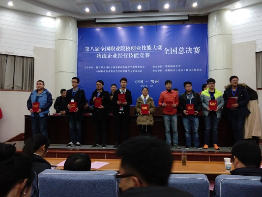 近日,第八届全国职业院校创业技能比赛——物流企业经营技能竞赛全国总决赛在鄂州职业大学举行,来自全国81所高职院校的139支代表队参加了角逐。我院参赛的学生代表队荣获了大赛三等奖,教师代表队荣获了大赛二等奖。