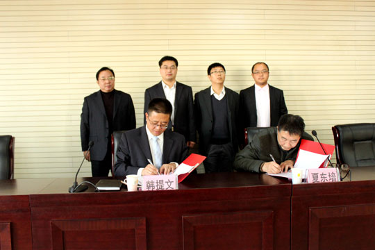 韩提文副院长代表学院对夏东培董事长一行表示热烈欢迎。他指出:我院始终坚持与企业行业紧密合作,共同发展,学院社会知名度以及软、硬件实力也逐年提升。开展订单式人才培养,推行校企合作、工学结合的人才培养模式,既是国家对高职教育发展的新要求,也是我院鲜明的办学方向和办学特色之一。人才联合培养协议的签订,旨在借助企业平台以及我院作为国家示范院校的优势,实现强强联合,进一步密切双方的战略合作关系,更好的服务企业发展,同时也为我院学生实习、实训、就业提供保障。