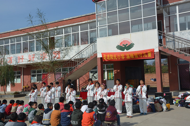 我院青年志愿者得到这个消息后,立即发起了向留守儿童捐赠衣物的号召,积极奉献自己的爱心。当我院志愿者和社会爱心人士将筹集的书籍、文具、食品、衣物、玩具等物资送到阳光小学时,受到了当地村民及全体师生的热烈欢迎。在捐赠仪式上,校长和留守儿童还精心准备了节目来答谢爱心人士和志愿者们。随后,志愿者们到一些留守儿童家中走访,看到留守儿童面对如此窘迫的生活环境,无不为之感到震惊,他们鼓励留守儿童好好学习,早日走出大山回报社会。