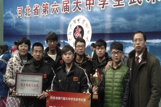 2015年1月4-8日,我院派出6名学生组成的代表队参加河北省第六届大中学生武术比赛。经过激烈的比拼,最终荣获冠军、亚军、等个人奖项11项,团体总分第三名,并荣获“体育道德风尚奖”。 此次河北省第六届大中学生武术比赛在秦皇岛市河北科技师范学院举行,共有41支代表队386名运动员参加不同组别的比赛项目。我院派出的运动员队员在比赛中充分发挥不畏强手,勇敢拼搏的精神,最终在大赛中脱颖而出。