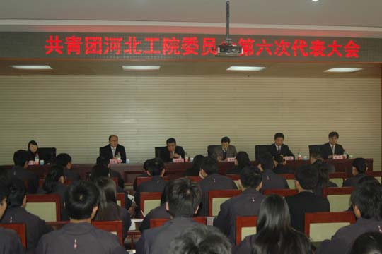 共青团河北工业职业技术学院第六次代表大会于 2012年12月22日 胜利召开。省直团工委副书记燕光辉、副院长王世龙出席会议并讲话。学工部相关负责人、各系团总支书记和243名团员代表参加了大会。