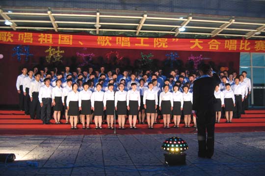 比赛在计算机技术系合唱团演唱的歌曲《托起明天的太阳》和《明天会更好》的嘹亮歌声中拉开了序幕。接下来,《保卫黄河》、《梦想在望》、《众人划桨开大船》、《让世界充满爱》等一首首脍炙人口的歌曲不仅使同学们重温了革命之路、传承了革命传统,更唱出了工院学子对祖国江山的热爱,对工院美好明天的祝愿。各个参赛队在表演形式上也有了很大的创新,金属材料工程系代表队将感人至深的诗歌朗诵穿插于表演之中;环境与化学工程系代表队演唱的《我们走在大路上》和建筑工程系代表队演唱的《咱们工人有力量》无论在服装、队形的编排上,还是歌曲的演唱上都给评委和观众留下了很深的印象;其他各系代表队也都通过合唱、齐唱、轮唱、领唱等多种艺术形式做了精彩表演,整场比赛精彩纷呈、高潮迭起,赛场上不时响起热烈的掌声。经现场评委的认真评判,金属材料工程系参赛队凭借其出色的演唱技巧和声部配合夺得了本次大赛的第一名,环境化学工程系、建筑工程系分获第二、三名。