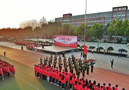 祖国七十周年华诞来临之际,举国欢腾、共庆盛事。在这个特殊的时刻,为大力弘扬爱国主义为核心的伟大民族精神,激励广大师生永葆“与祖国同呼吸 与民族共命运”的家国情怀,提高团员青年将爱国信仰落实到行动自觉的意识,通过仪式感教育引导团员青年涵养爱国之心、激活自信源泉。9月29日,我院在南校区体育场举行了“我的祖国我奋斗——国旗下的思政课”,2019级8000余名新生聆听了这堂教室外的思政课。