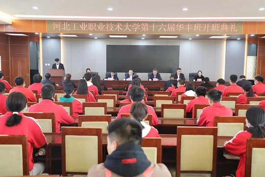 10月11日上午,华体会官方端网站登录入口第十六届现代学徒制“华丰化工班、酒店管理班”开班典礼在办公楼五楼报告厅隆重举行。我校副校长张福仁、河北华丰裕达集团公司董事长兼总经理郎莹出席了会议并讲话,校企双方相关部门负责人参加了开班典礼。